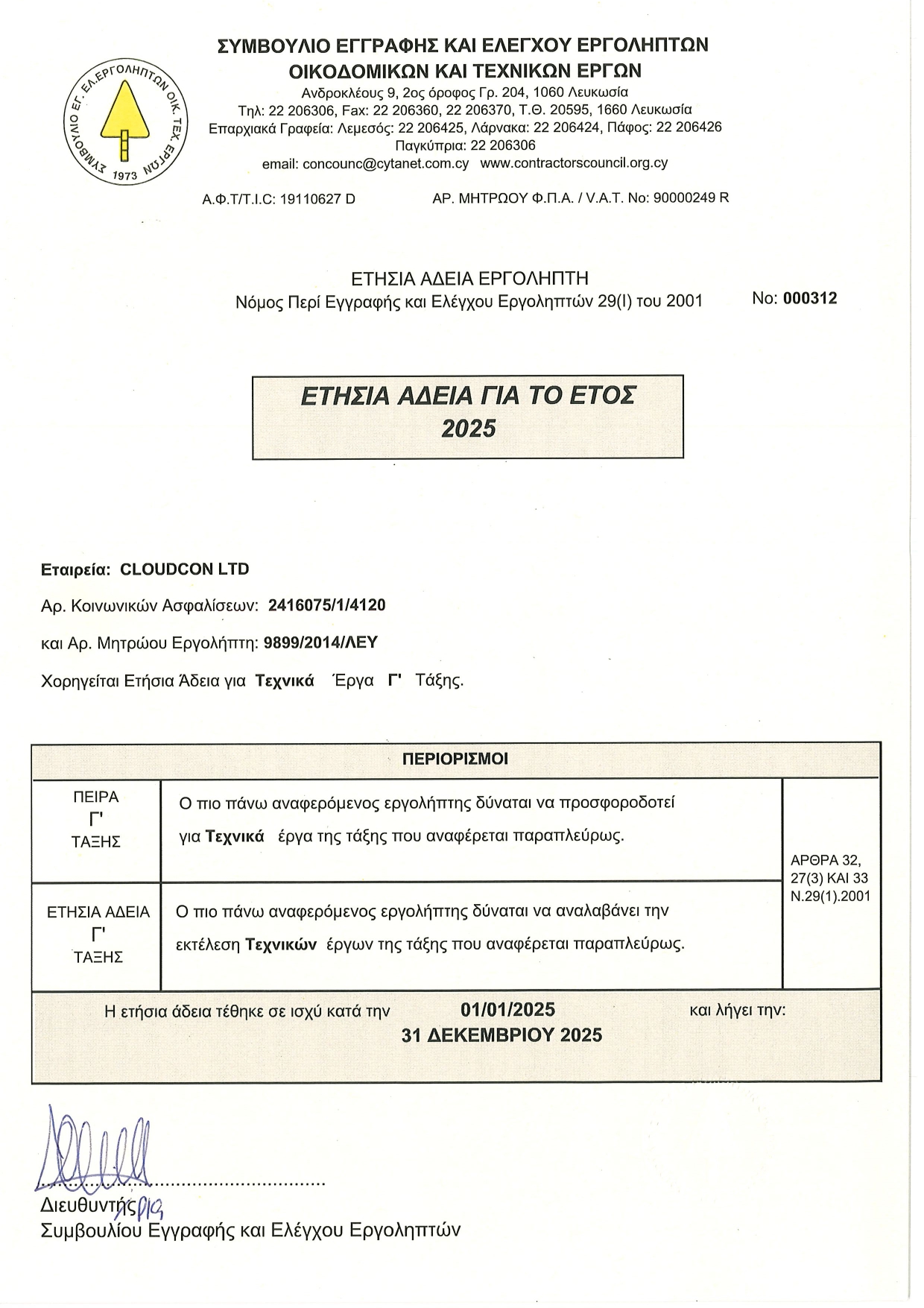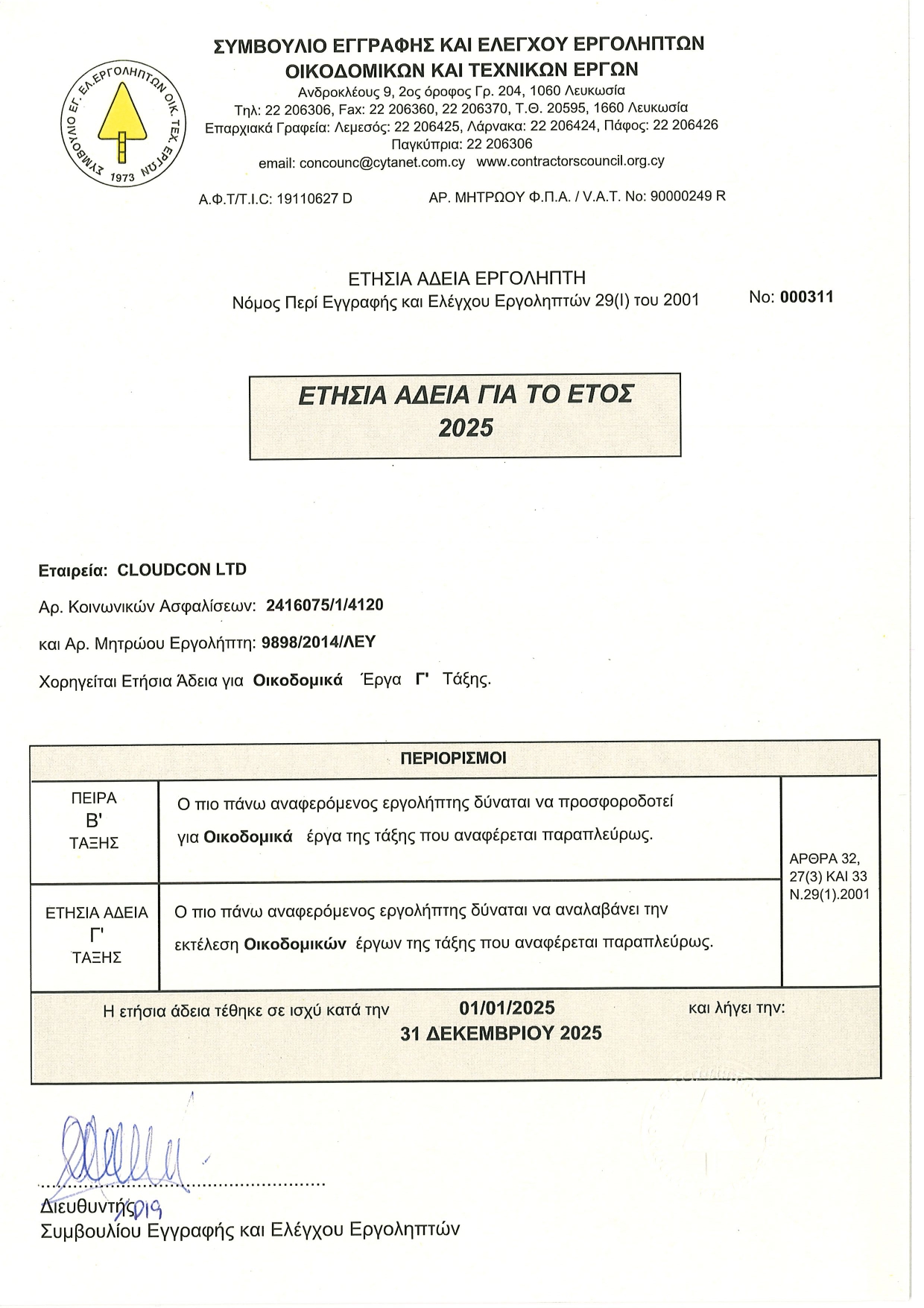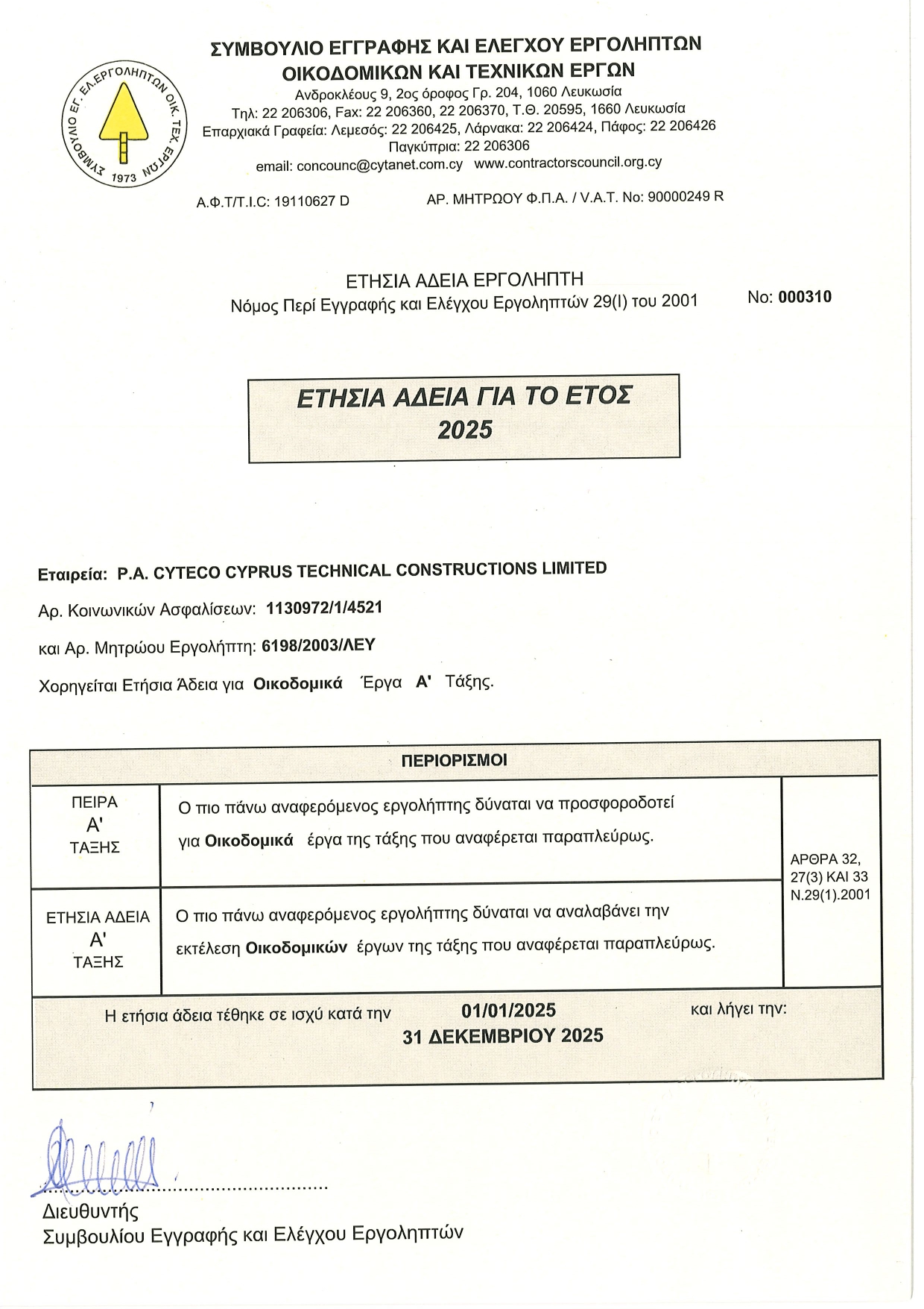 The following Emedco Group Companies are registered within the Council for the Registration and Control of Contractors in Cyprus: